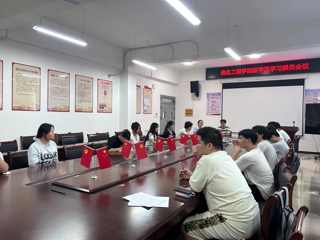 本站讯(信息工程学院 王乐)为更好开展本学期教学工作,提高教学质量,9月9日,信息工程学院在智云楼B501室召开新学期学习委员会议,辅导员谢小欣老师主持会议。