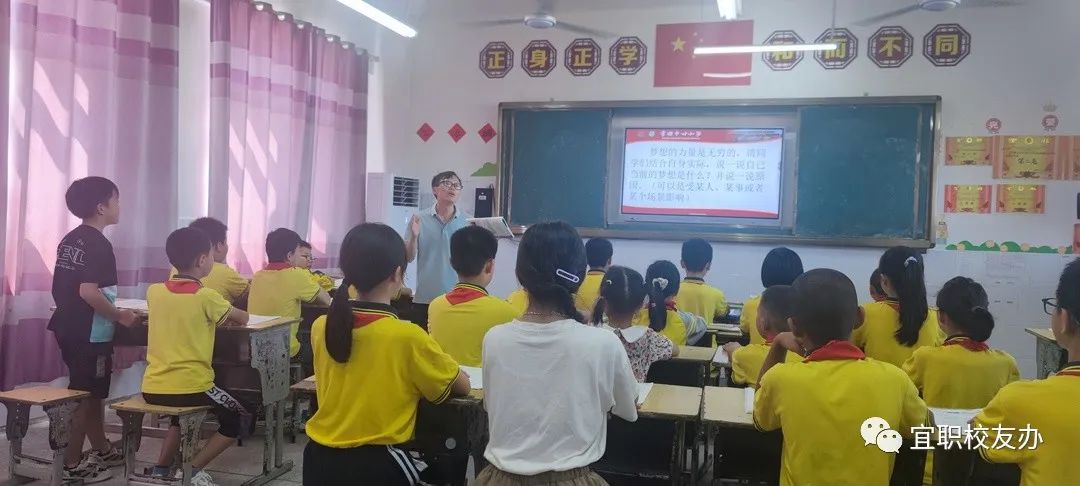 邱良清热情接待了开云官网一行,首先为我们介绍了他毕业后的工作经历,感谢在校期间母校老师对他的教诲,随后邀请大家聆听了他给学生讲授的一堂思想教育课,教育学生们从小就要树立自己远大的理想。