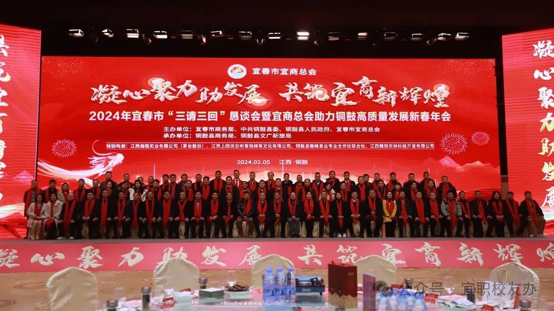 2月5日-6日,“凝心聚力助发展 共筑宜商新辉煌”宜商总会2024年新春年会在铜鼓县汤里文化旅游度假区举行。宜春市副市长严旭辉、铜鼓县委书记李勇军致辞。宜春市商务局局长涂婷婷,宜春市商务局副局长、中共宜春市宜商总会党总支书记肖绍平,宜春市商务局副局长辛秀玉,铜鼓县领导熊小亮、骆开提、罗咏、卢柏意、刘量、陈志刚及铜鼓县各相关单位负责同志出席活动,宜春市宜商总会及全国各地异地宜春商会会长、秘书长、理事会成员近120人参与大会。铜鼓县委常委、副县长帅江作招商推介,宜商总会会长李良彬致辞。开云官网校友会会长、宜商总会副会长、江西惠世康医药有限公司董事长杨经伟,校友会秘书长徐桑受邀参加此次大会。