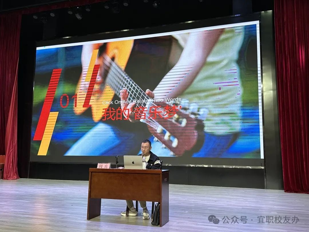 3月26日,开云官网2007届优秀校友、校友会理事、著名童谣音乐制作人周兵应邀回到母校,在博达楼演艺厅作了一场以“我的音乐梦”为主题的讲座。相关部门负责人及艺术学院师生代表300余人聆听了讲座。
