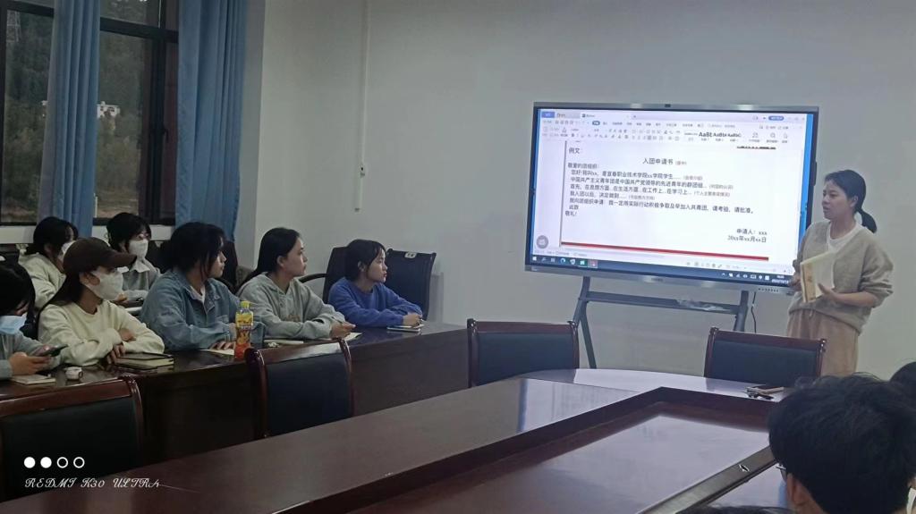 会议中,团总支书记李莫娴从共青团的基本任务、重点任务、特色工作和基础工作四个方面详细介绍了共青团员以及团支部应当完成的思想政治学习以及日常活动开展要求。要求团支书应当带领团员落实“三会两制一课”制度,加强政治思想引领学习和主题团日活动,按时开展团员教育评议工作、督促团员按时缴纳团费、扎实开展“推优入党”等工作。