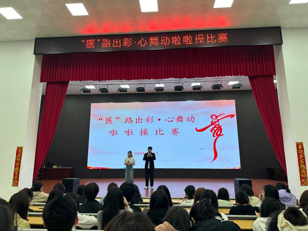 悦动轻盈舞姿,谱写青春活力。4月11日晚,医学院(附属医院)在仁济楼小礼堂举行“医”路出彩·心舞动啦啦操比赛。学院学生工作党支部书记孙智清、宣传委员李灿、全体辅导员及2023级300余名学生参加活动。