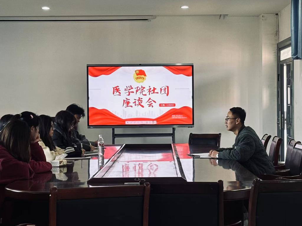 为深入贯彻落实习近平总书记关于高校思想政治工作和青年工作的重要论述,进一步提升医学院社团管理水平,深化学生社团育人功能,11月27日,医学院在仁济楼A405会议室召开学生社团工作骨干座谈会。医学院各社团负责人、骨干出席会议,会议由辅导员刘杰主持。