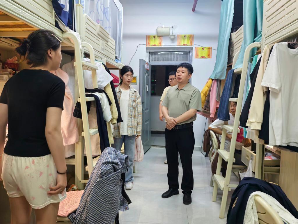 4月20日晚,医学院党总支书记潘锋钢、副书记李莫娴和学工负责人李灿带领全体在校班级班主任,深入学生宿舍开展安全隐患大排查工作。