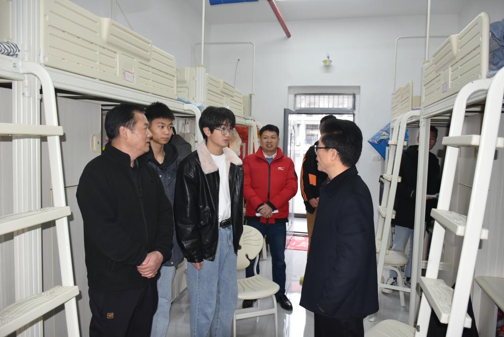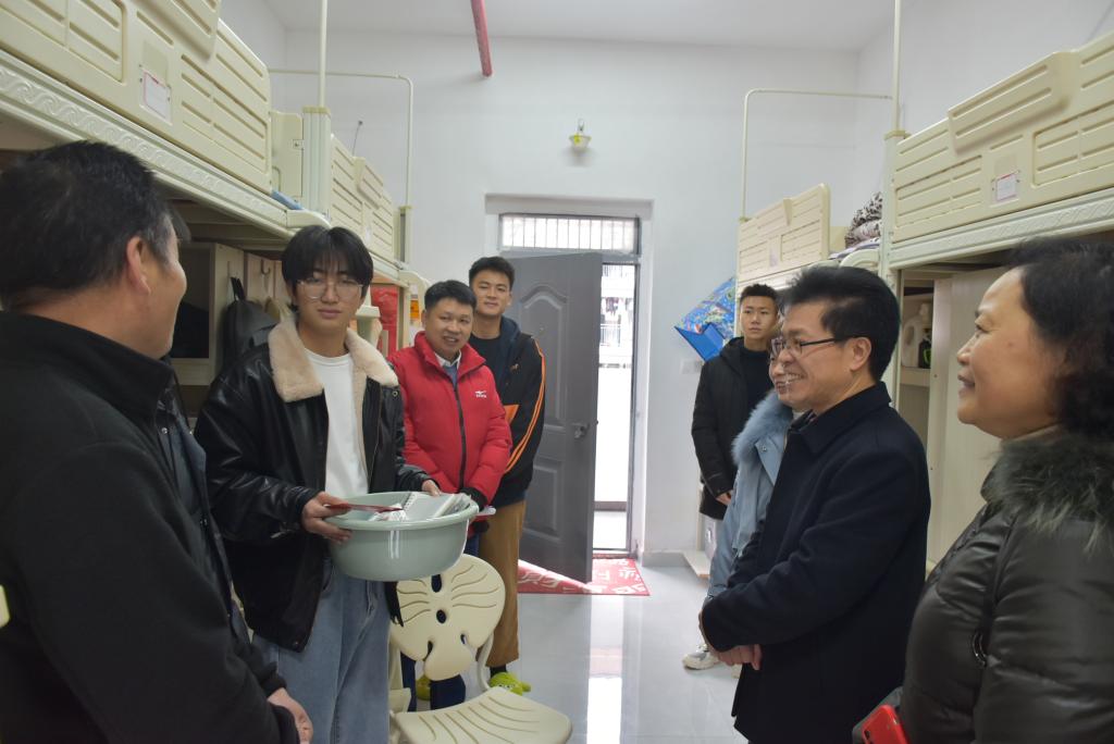 杨云山在宿舍与学生亲切交谈,他关切地询问大家,是否适应大学生活、对学校硬件设施感觉怎么样,随后仔细询问了同学们的家庭情况、期末考试准备情况、返乡方式及假期计划等,详细了解学生的困难和需求。杨云山鼓励同学们要学会制定人生的规划,树立远大的志向,立大志、明大德、成大才、担大任,保持积极健康、乐观向上的态度,发扬吃苦耐劳的精神。有困难及时向老师和学校反映,学校会为及时解决,并祝愿同学们在新的一年里学习进步,健康成长!