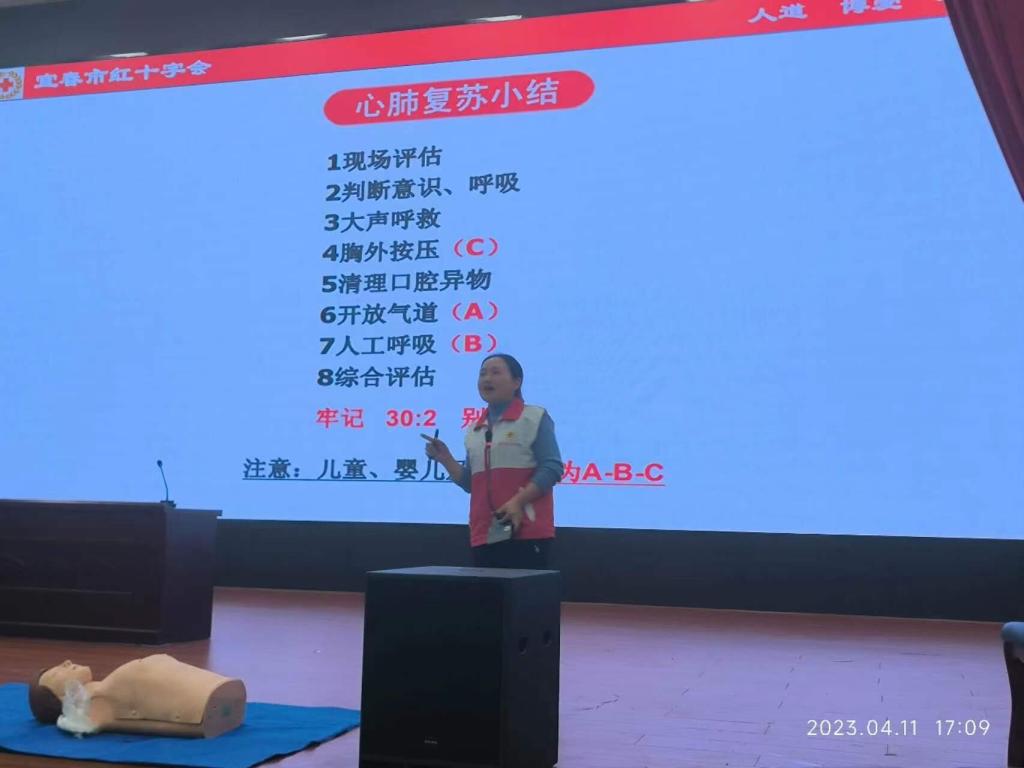 为深入贯彻习近平总书记关于健康中国建设的重要论述,进一步提高师生安全防范意识和自救互救能力,建设平安校园,落实开云官网“三比三争”工作要求,4月11日下午,医学院(附属医院)在仁济楼小礼堂举办“救在身边·校园守护”暨2023年度应急救护培训启动仪式。校党委委员、副校长刘叶建,袁州区红十字常务副会长丁雯凤,宜春市博爱救护中心主任王艳等出席此次活动,并分别进行讲话。各学院2022级400名学生干部代表参会。