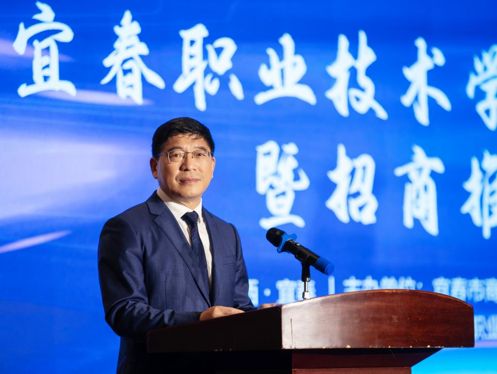 党委副书记、校长邱军在致辞中代表学校向多年来关心、支持学校发展的领导、校友、合作企业家表示衷心的感谢和欢迎!他向大家详细介绍近年来学校取得的佳绩,希望各位校友能走进宜职、积极宣传宜职、推介宜春,做建设社会主义现代化宜春的亲历者和见证人;希望各位校友能一如既往支持宜职,支持宜春,做宜春经济社会发展的“最佳合伙人”,共同实现双向奔赴、合作共赢。