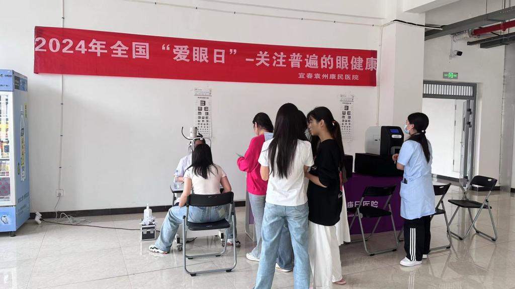 李邦结合同学们日常用眼习惯分析了近视成因,讲解了眼部常见疾病和科学用眼方法等内容,同时,还向大家宣传了眼病防治知识,强调了全生命周期眼健康的重要性。讲座结束后,袁州康民医院眼科工作人员在日新楼开展了眼健康普查活动,大家纷纷前往,体验眼部检查,学习爱眼知识。