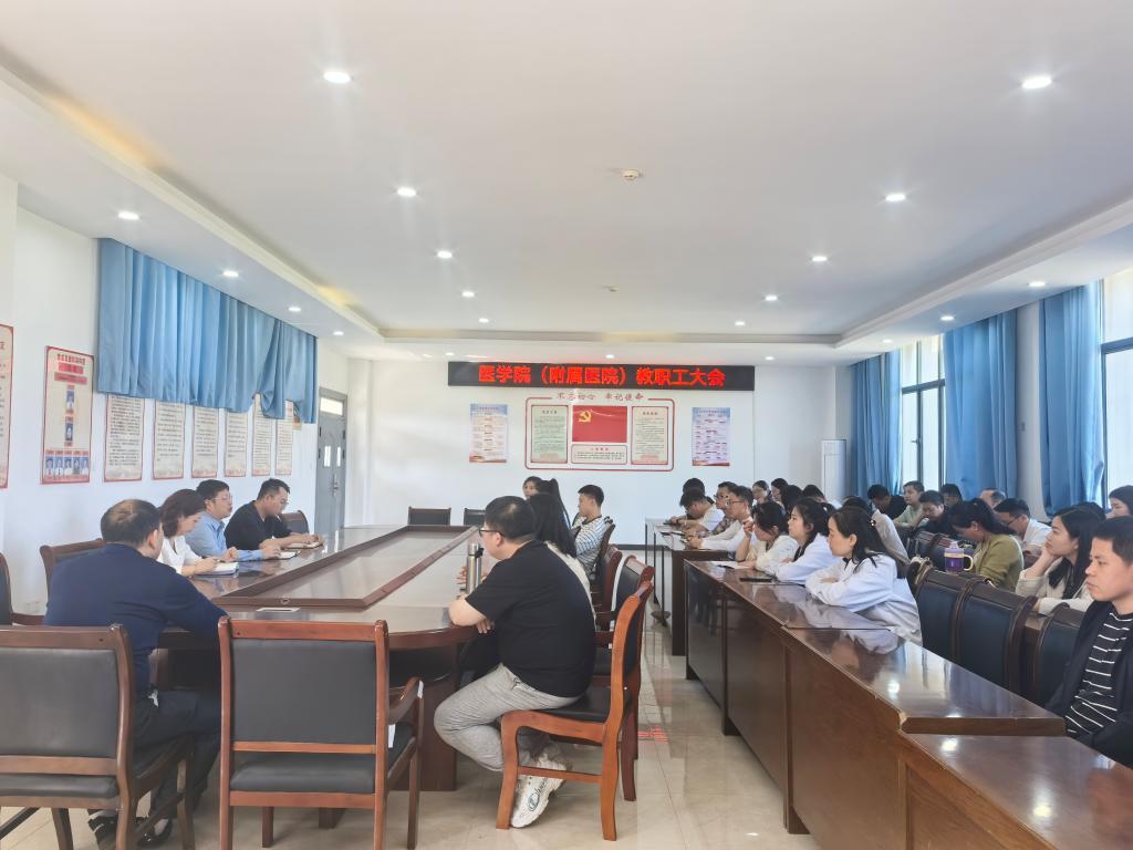 4月15日下午,医学院(附属医院)在仁济楼A405召开4月份全体教职工大会。会议由院党总支书记潘锋钢主持,全体教职工参会。