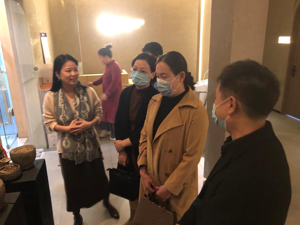 11月22日上午,在杭州灸春堂,刘叶建一行与董事长宫坤等企业负责人调研交流。
