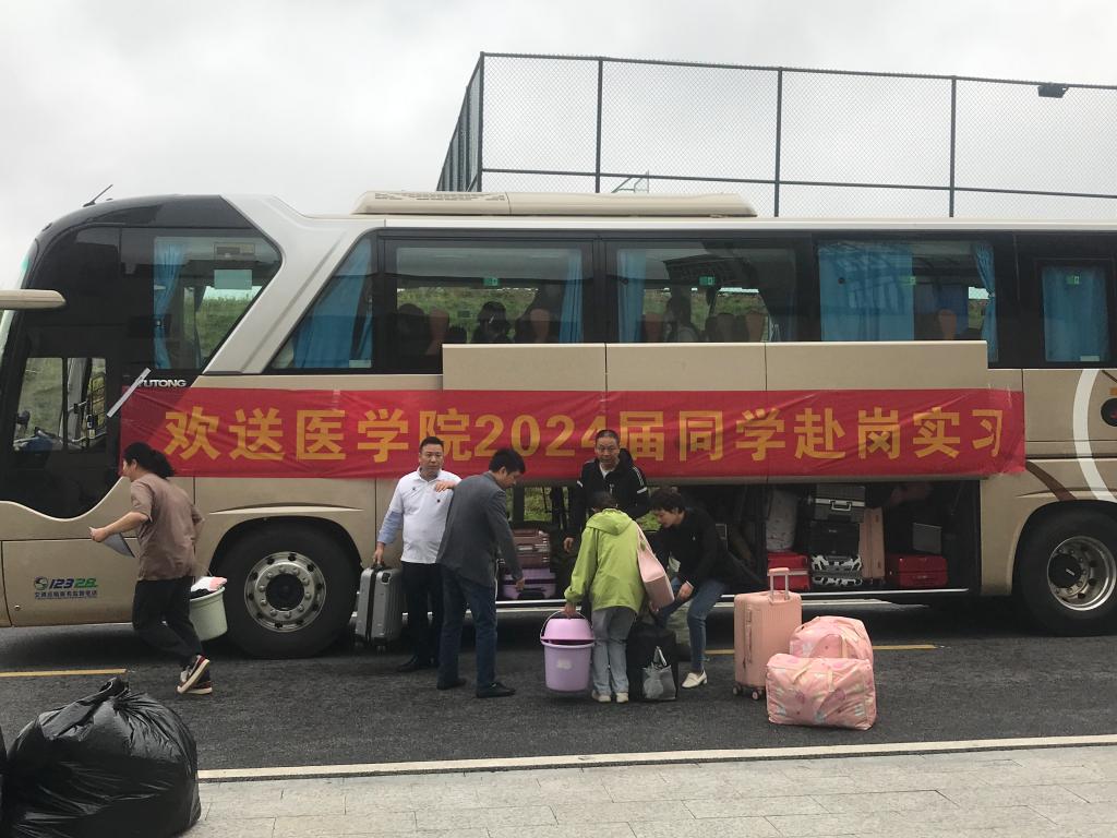 晨风微凉,师生情浓。学院领导现场指挥、组织帮助实习生搬运行李、有序登车,并与实习生亲切交谈。潘锋钢再三叮嘱实习生在外要注意安全,有困难第一时间联系带教老师,希望实习生在实习中不忘初心,践行医者仁心,增长专业技能,不断挑战自我,努力成为一名优秀的医务工作者;同时要保重身体,严格遵守实习单位纪律。最后,实习生与在场的领导老师依依惜别,带着殷切希望与祝福踏上实习征程。