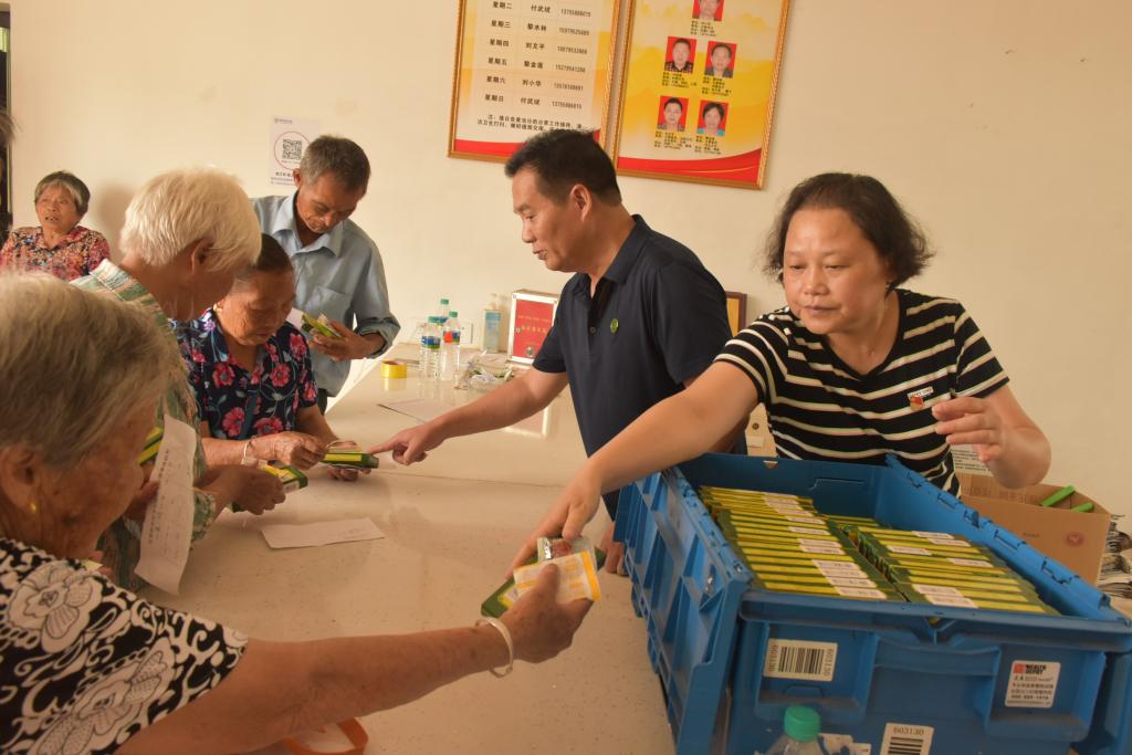 活动得到村民的热烈欢迎和积极响应,医疗服务队到达村委会时,已有村民带着病历排起了队伍。师生们热情接诊,仔细询问他们的病史,耐心的聆听病情,查看检查报告,提出适应的医疗咨询,并为村民们做检查,讲解疾病防治和健康生活注意事项。医学院院长刘敏和党总支书记舒文为前来问诊村民发放免费药品。现场人头攒动,气氛热烈。