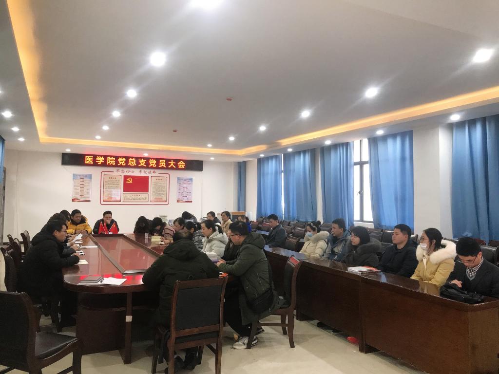 为深入学习宣传贯彻党的二十大精神,不断提高党员政治理论水平和思想政治觉悟,2月9日上午,医学院党总支在仁济楼405会议室组织开展“党员活动日”学习暨2022年度党支部书记述职大会。全体党员参会,会议由党总支书记王晔主持。
